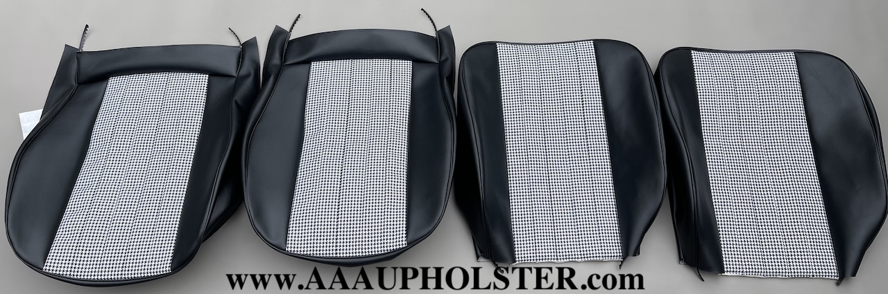 Porsche 911 / 912 1965 – 73 Pepita Houndstooth Insert Front Seat Covers with headrests cover in Black Real leather